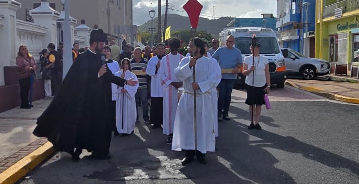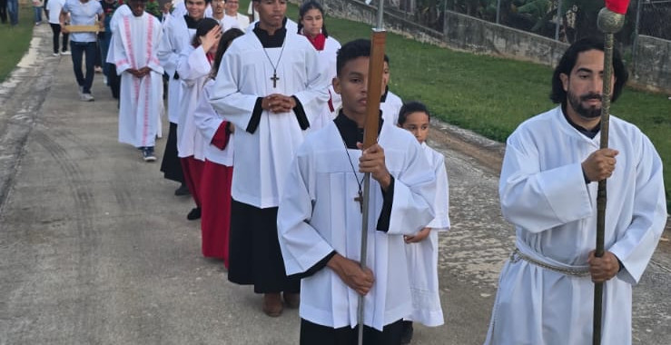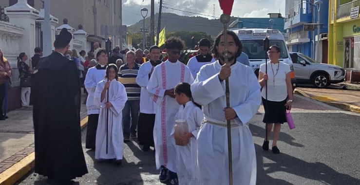 Junto a ellos caminan nuestro obispo, Luis Francisco Miranda Rivera, y el rector de la Catedral, el Rvdo. P. Luis Norberto Correa. No es solo una caminata; es un peregrinar interior. Cada paso parece llevar consigo una oración, una súplica, una entrega silenciosa. Las calles se convierten en un templo abierto, donde la fe se hace visible y compartida.